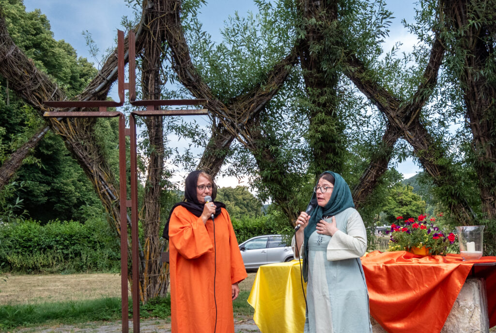 Das Dekanatsfrauenteam aus Weißenburg und Pappenheim lud am 1.7. zu einem Gottesdienst in die Weidenkirche ein. Zwei starke Frauen aus der Bibel Ruth und Noomi standen im Mittelpunkt. Sie erzählten eindrucksvoll ihre Geschichte und das Team spannte den Bogen zu den Themen die auch heute noch aktuell sind: z. B. Frauenfreundschaft, Frauensolidarität und Integration. Damals wie heute sind die Wege manchmal ungewöhnlich und die Zeiten herausfordernd– aber wenn man zusammen hält und auf Gott vertraut, werden sich neue Perspektiven auftun. Schöne Lieder, Gebete, das Angebot der Einzelsegnung und ein Tanz rundeten den Gottesdienst ab. Am Ende verweilten viele Frauen noch zu Sundowner, Snack und Begegnung und es gab sehr viele positive Rückmeldungen an das engagierte Team.