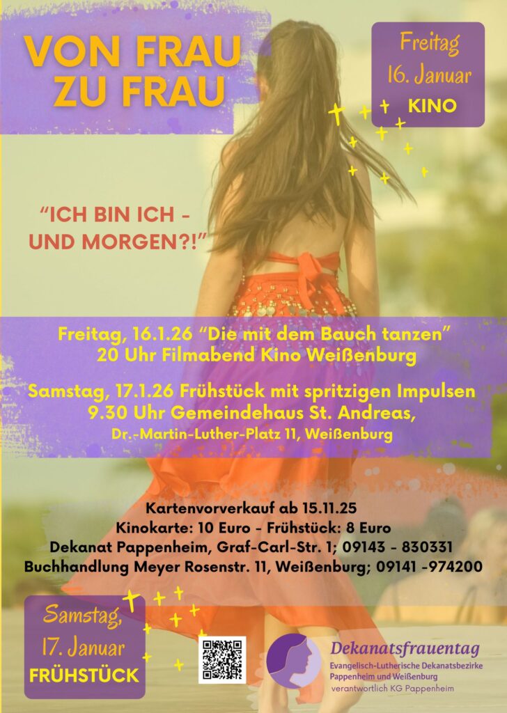 „Die mit dem Bauch tanzen“ heißt der humorvolle Kinofilm zu dem das Dekanatsfrauenteam Pappenheim und Weißenburg am Freitag, 16.Januar 2026 ins Kino Weißenburg einladen. Ab 19.30 Uhr ist Einlass um 20 Uhr beginnt der Film, bei dem eine Tochter ihre älterwerdende Mutter und deren Freundinnen zu ihrem ungewöhnlichen Hobby, dem Bauchtanzen porträtiert und sich dabei als skeptische Vertreterin ihrer Generation verhält.
